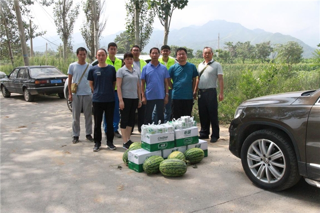 夏日炎炎送清涼,情意暖暖感人心。近日來,三門峽氣溫不斷升高,項(xiàng)目一線施工人員每日頂著炎炎烈日,堅(jiān)守在自己的工作崗位上,兢兢業(yè)業(yè)。為預(yù)防高溫引發(fā)中暑,做好防暑降溫工作,確保廣大員工身體健康和生產(chǎn)安全。8月2日,三門峽市昌通路橋建設(shè)有限責(zé)任公司總經(jīng)理王軍紅帶隊(duì)領(lǐng)有關(guān)領(lǐng)導(dǎo)分別到國道310南移項(xiàng)目部及省道312項(xiàng)目部開展“防暑降溫送清涼”慰問活動(dòng),慰問堅(jiān)守在項(xiàng)目一線施工干部職工?,F(xiàn)場給項(xiàng)目一線施工人員送去了防暑降溫藥品(藿香正氣水、風(fēng)油精、人丹)、礦泉水和西瓜。為奮戰(zhàn)在烈日炎炎下的項(xiàng)目一線施工人員提供“綠色安全保護(hù)傘”,確保職工的身心健康。
