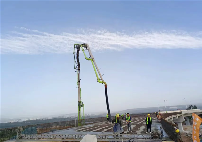 市區(qū)向橋面鋪裝完成澆筑